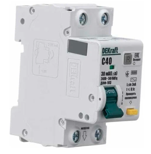 Автоматический выключатель дифференциального тока DEKraft 1Р+N 40А 30мА тип AC х-ка C ДИФ-103 4.5кА