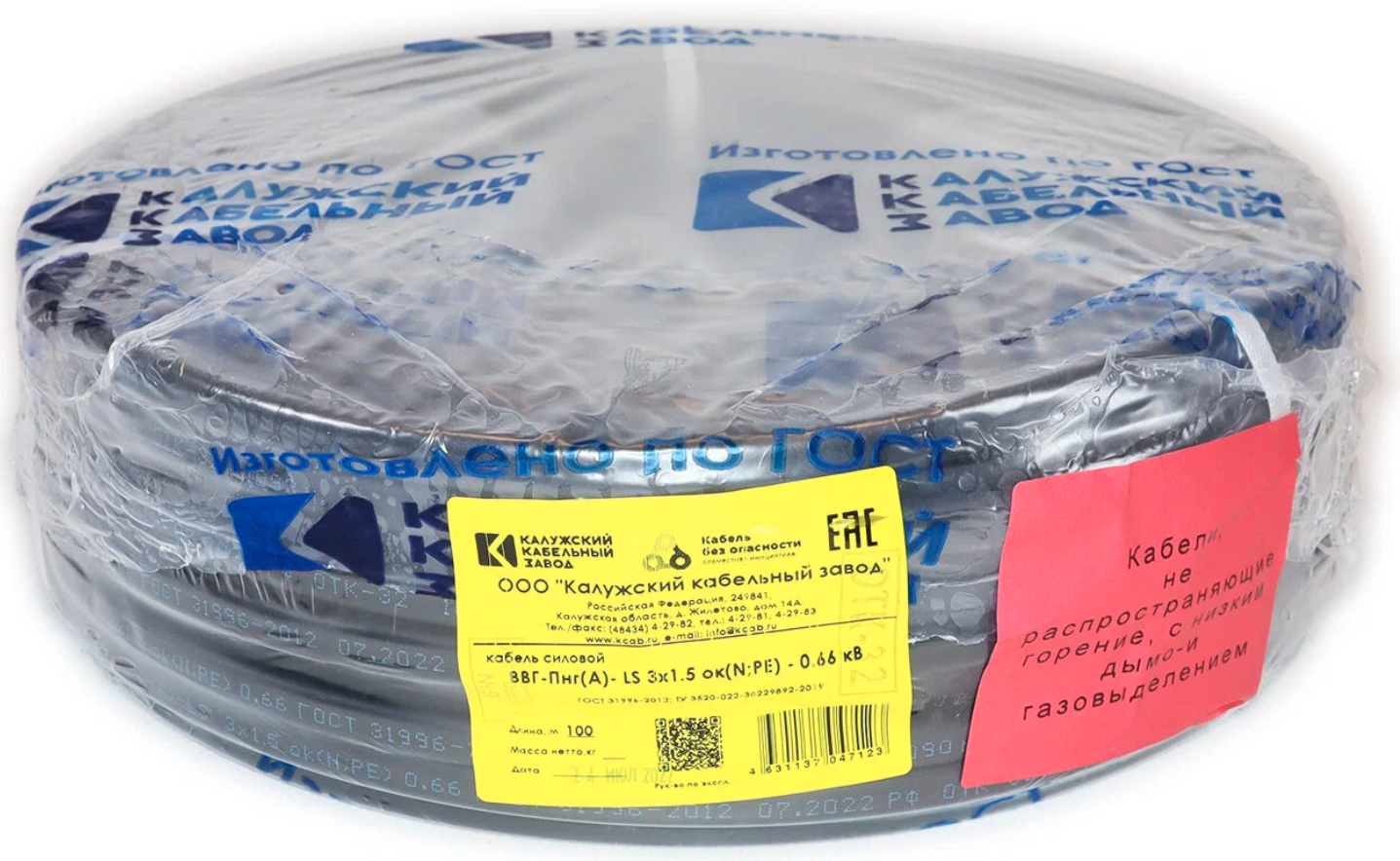 Кабель ВВГпнг(А)-LS 3х1.5ок (N, PE) — 0.66кВ ГОСТ (ККЗ)